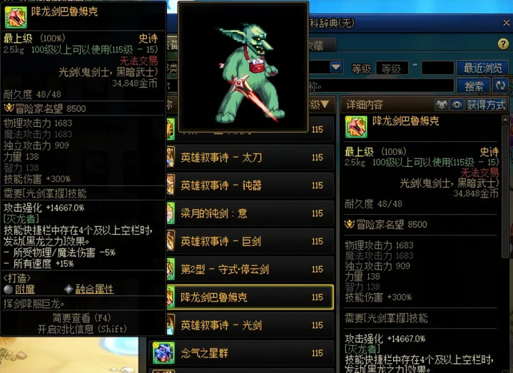 【2】史诗武器,典型例子如“降龙剑”!
