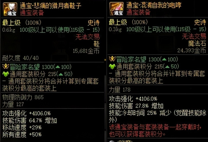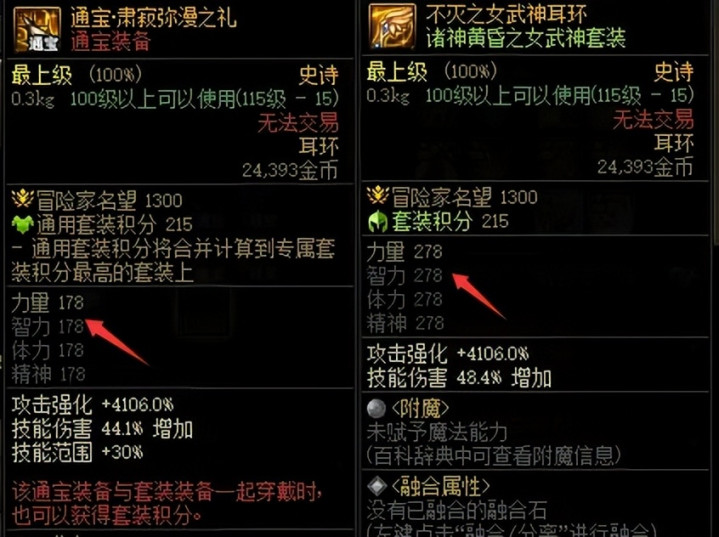 通宝史诗耳环增加178点四维,而套装史诗耳环增加278点四维。