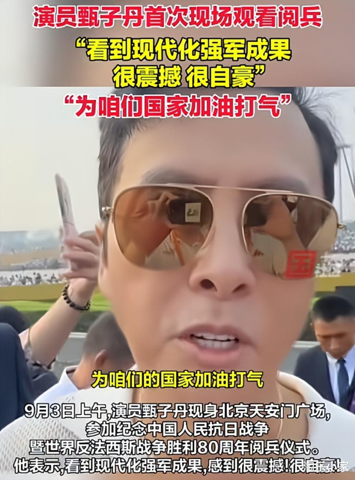 甄子丹在接受采访时难掩激动之情:“这是我第一次现场观看阅兵盛典,心被震撼了,我们要珍惜这来之不易的和平生活,为祖国加油打气。”