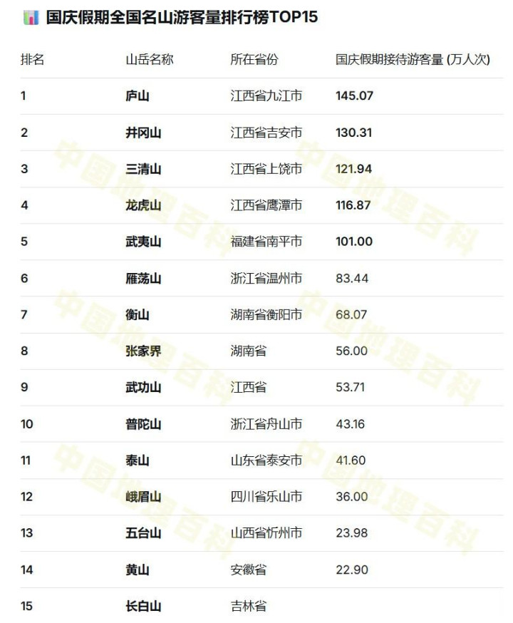 这个国庆,你的朋友圈被哪座山“刷屏”了?八天长假,就像一场全国名山的“终极人气PK”,游客们用脚步投出了心中的NO.1!今天,就让我们一起揭晓这份热乎的 【国庆名山游客量TOP15终极榜单】 ,看看谁才是这个假期里真正的“顶流”!