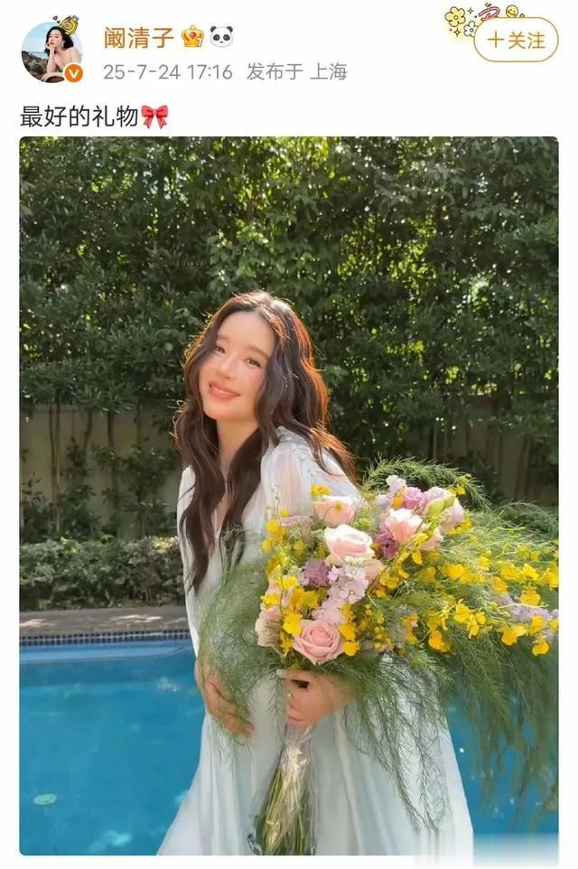 阚清子直接晒出孕肚照,配文“最好的礼物”,那幸福都快溢出屏幕了,照片里的她,穿着宽松长裙,精心打扮过,可那明显隆起的孕肚藏都藏不住,看着起码有五六个月了。