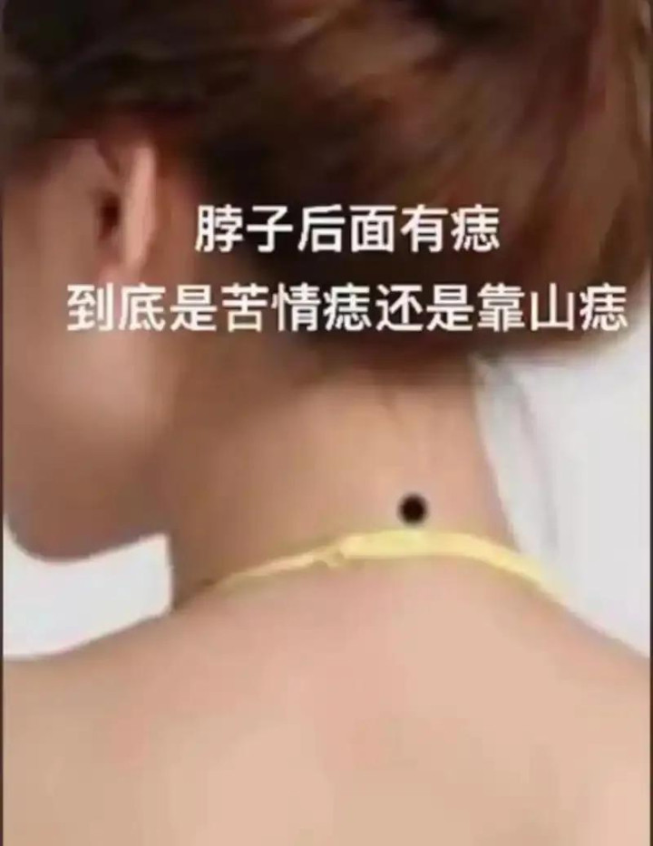 “后脖有痣有靠山”:从字面意思上来说,如果一个人的后脖颈上有痣,那么这个人一生中会有坚实的“靠山”。