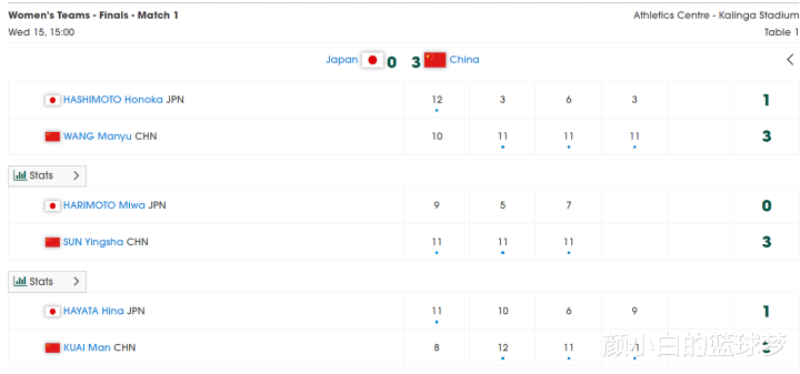 决赛对阵日本队的阵容是王曼昱、孙颖莎、蒯曼,最终是王曼昱3-1桥本帆乃香、孙颖莎3-0张本美和、蒯曼3-1早田希娜。可以看到陈幸同的名字没有出现在任何一场比赛中。