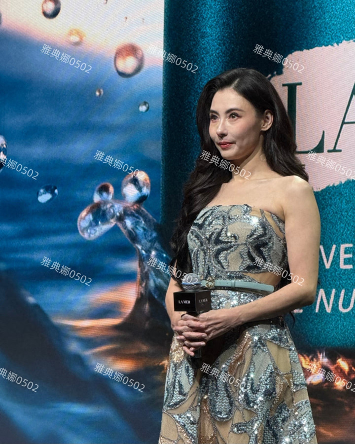 张柏芝今日跟杨千嬅,欧阳娜娜以及韩星郑秀妍一起现身上海出席海蓝之谜的活动,为了契合今天海洋主题的理念,4位女星都穿了蓝色系的礼服,张柏芝穿了一袭抹胸亮片礼服梳着大波浪,是典型的浓眉大眼又明艳的港风美女,不用美颜滤镜,原相机拍的她也十分惊艳。